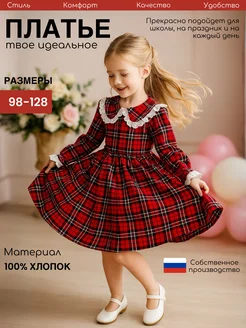 Платье детское нарядное с длинным рукавом красное в клетку