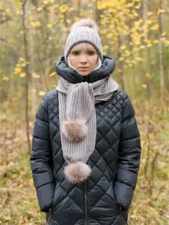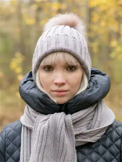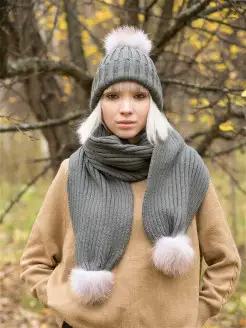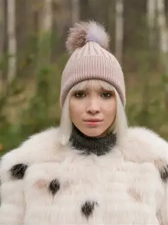 Шапка вязаная с помпоном из меха