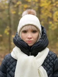Шапка вязаная с помпоном