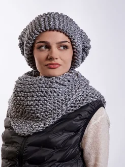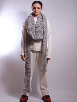 Шарф теплый зимний объемный длинный вязаный, альпака