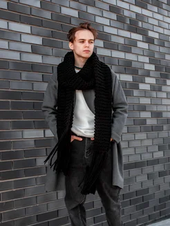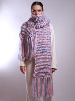 Шарф теплый зимний объемный длинный вязаный ручной работы