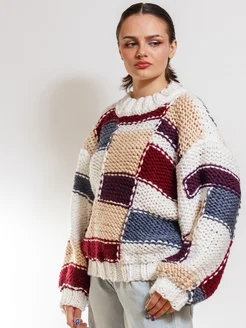 Свитер пуловер оверсайз, объёмной ручной вязки