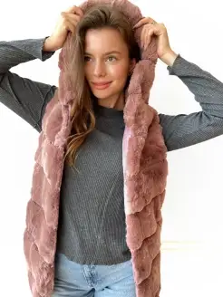 Жилет меховой женский с капюшоном