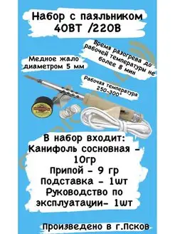 Набор канифоль+припой+подставка с паяльником 40Вт Псков