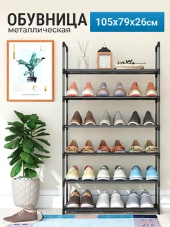 Обувница 105х79х26, с 6 полками, металлическая, черная