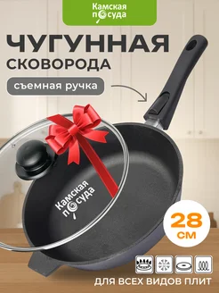 Сковорода с крышкой чугунная 28см съемная ручка