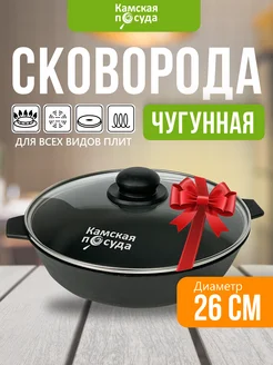 Сковорода с крышкой чугунная 26см глубокая