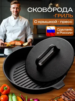 Сковорода гриль чугунная 28см с крышкой пресс