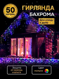 Гирлянда штора 3х3 синяя новогодняя занавес на окно