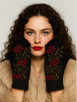 Варежки зимние шерстяные теплые с ручной вышивкой