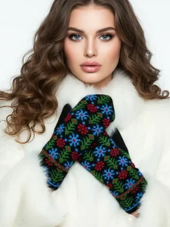 Варежки зимние шерстяные теплые