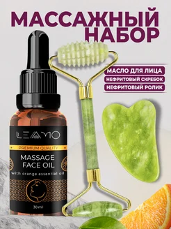 Массажный набор масло скребок Гуаша и ролик для массажа лица