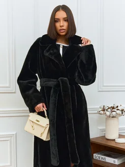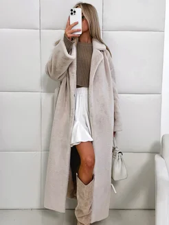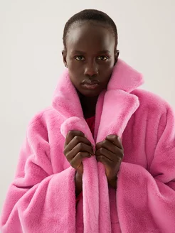 Шуба искусственная из экомеха в сливовом цвете оверсайз