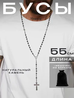Бусы четки мужские на шею с крестом