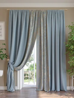 Голубые Шторы в спальню 220х280. Портьеры 2 шт. С рисунком