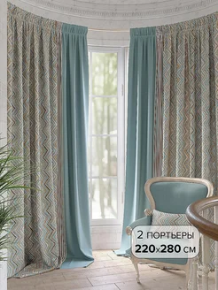 Шторы для гостиной 220х300 Портьера 2 шт с рисунком
