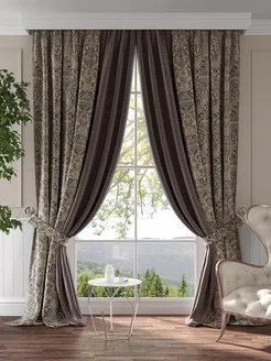 Шторы в спальню длинные 220х280 Портьеры 2 шт С рисунком