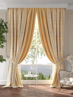Шторы в спальню 220х270 Комплект портьеры 2 шт. С рисунком