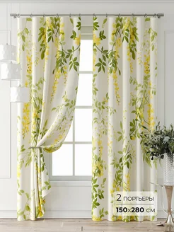 Шторы в спальню 150х280 комплект портьер 2 шт с рисунком