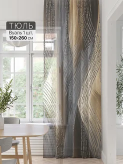 Тюль в спальню и гостиную 150х260 длинная готовая с рисунком