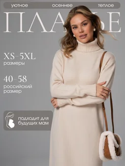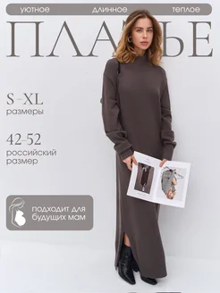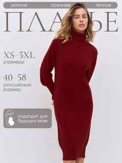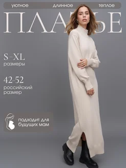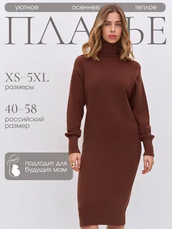 Платье длинное теплое оверсайз свитер вязаное с горлом