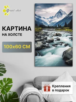 Картина интерьерная на холсте в гостиную Река в горах 100х60