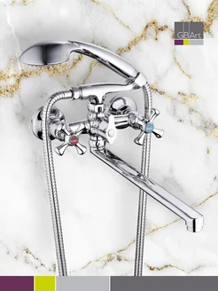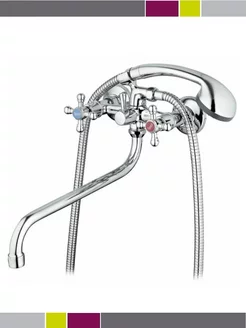 Смеситель для ванны с душем двухвентильный с длинным изливом