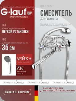 Смеситель для ванны с душем с длинным изливом двухвентильный