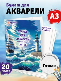 Бумага для акварели А3 папка 20 листов для рисования 200г м2