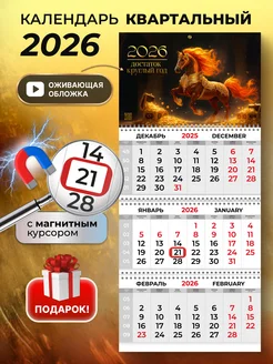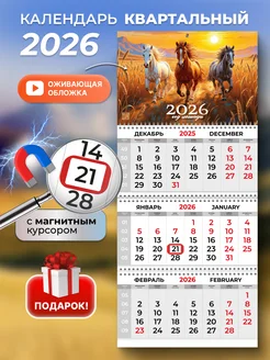 Календарь 2026 настенный квартальный с магнитным курсором