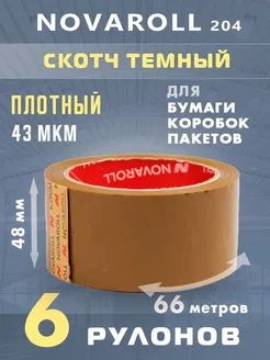 Скотч коричневый широкий 48 мм х 66 м 6 шт Novaroll