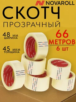 Скотч прозрачный широкий Novaroll 66 метров, 6 шт