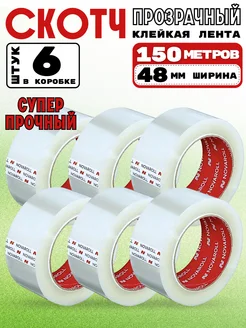 Скотч прозрачный широкий Novaroll 150 метров, 6 шт