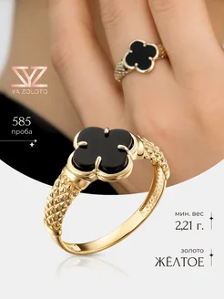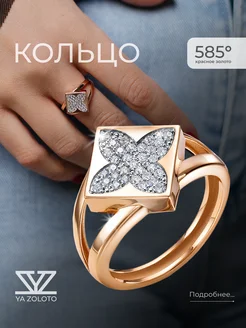 Кольцо золотое 585 пробы клевер с алмазной гранью