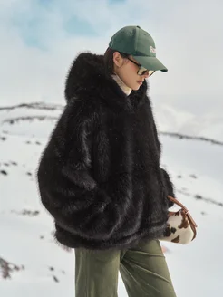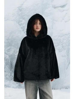 Шуба искусственная с капюшоном худи