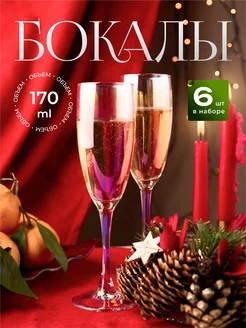 Бокалы для шампанского 170 мл 6 шт подарочный набор фужеров