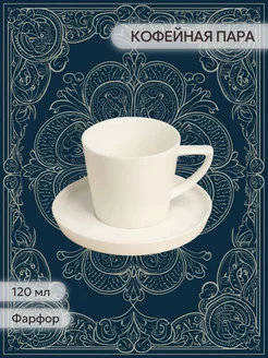 Кофейная пара фарфоровая «Sola», 120 мл, белая