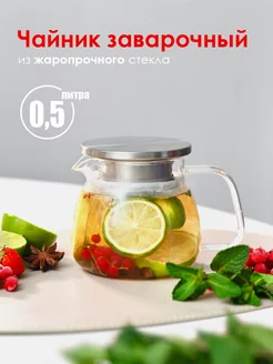 Чайник заварочный стеклянный с ситечком 500 мл для кухни