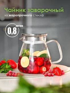 Чайник заварочный стеклянный с ситечком 800 мл для кухни