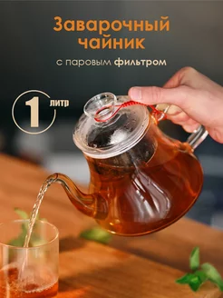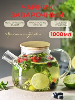 Чайник заварочный стеклянный с ситечком 1000 мл для кухни