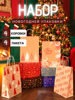 Подарочный набор - пакет с ручками 4 шт, коробка 4 шт