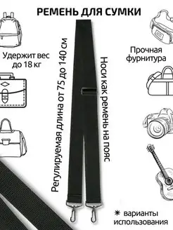 Ремень для сумки широкий 140 4 см текстиль карабины серебро