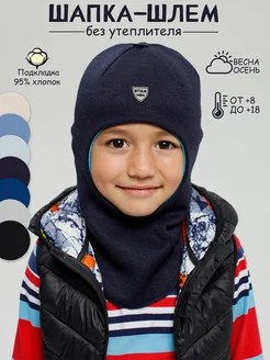 Шапка-шлем для мальчика весенний с хлопковым подкладом