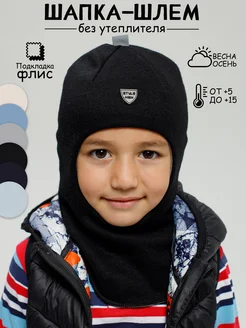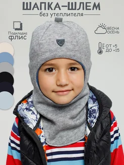 Шапка шлем для мальчика демисезонная с флисовым подкладом
