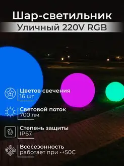 Светильник шар уличный садовый светодиодный RGB 20 см