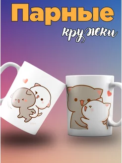 Парные кружки с принтом Котики для Парня и Девушки Муж Жена