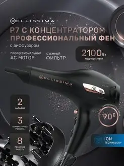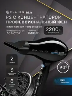 Профессиональный фен P2 ионизация, 2 насадки 2200 Вт