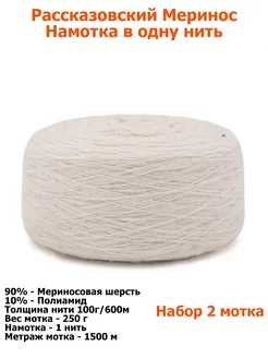 Пряжа Меринос, Цвет - белый (в одну нить)