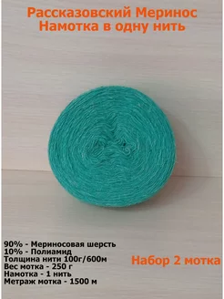 Пряжа Меринос, Цвет - изумруд (в одну нить)