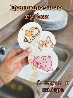 Кухонные губки для мытья посуды целлюлозные прессованные 4